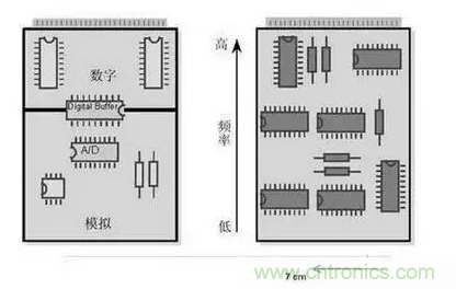 數模混合互連設計的目的就是要通過合理的布局、布線、屏蔽、濾波、電源地分割等設計方法來保證數字信號的幹擾隻存在於數字信號區域。