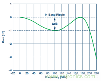 為了確定通帶中的最大紋波量,應使該規格等於係統要求的最大限值。這樣有助於獲得更快的阻帶滾降。