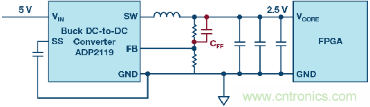圖6. 當沒有環路補償引腳可用時,利用前饋電容可以調節控製環路。