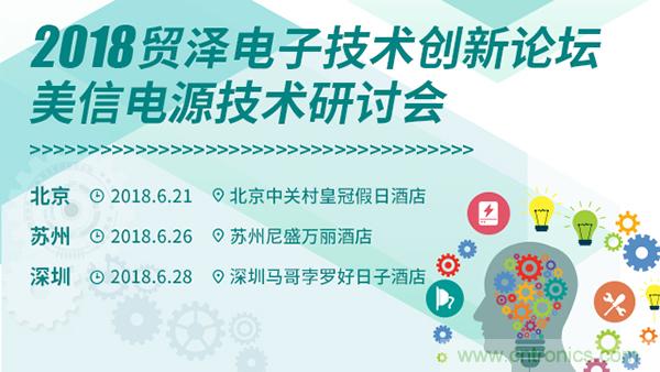 【導讀】貿澤電子(Mouser Electronics) 宣布攜手美信半導體,於6月21日北京中關村皇冠假日酒店、6月26日蘇州尼盛萬麗酒店、6月28日深圳馬哥孛羅好日子酒店,舉辦“2018貿澤電子技術創新論壇-美信電源技術研討會”。