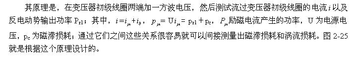 因此,(2-81)、(2-82)、(2-83)、(2-84)式shi最zui好hao隻zhi用yong於yu對dui正zheng激ji式shi輸shu出chu的de單dan激ji式shi開kai關guan電dian源yuan變bian壓ya器qi進jin行xing磁ci滯zhi損sun耗hao和he渦wo流liu損sun耗hao功gong率lv測ce試shi,因yin為wei其qi初chu級ji線xian圈quan的de電dian感gan相xiang對dui比bi較jiao大da,勵li磁ci電dian流liu比bi較jiao小xiao;如果需要對反激式輸出的單激式開關電源變壓器進行測試,最好隻用於對小功率開關電源進行對比測試。