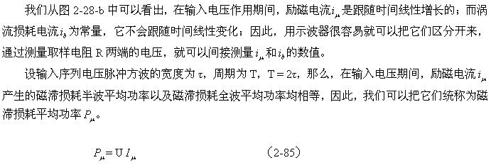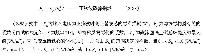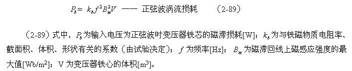 這裏順便指出,利用(2-88)和(2-89)式來分別測試變壓器鐵心的磁滯損耗和渦流損耗是非常困難的;一yi個ge是shi它ta們men的de係xi數shu很hen難nan決jue定ding,另ling一yi個ge是shi兩liang者zhe很hen難nan分fen別bie進jin行xing測ce量liang,或huo從cong測ce量liang結jie果guo中zhong進jin行xing分fen離li。對dui比bi兩liang式shi的de參can數shu就jiu可ke以yi知zhi道dao,它ta們men之zhi間jian最zui大da的de區qu別bie是shi頻pin率lv對dui損sun耗hao的de影ying響xiang程cheng度du;一個是與頻率成正比,另一個是與頻率的平方成正比。