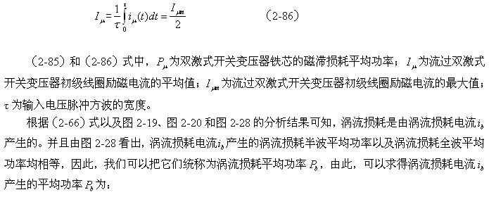 在雙激式變壓器鐵芯中,磁滯損耗也是由流過變壓器初級線圈勵磁電流產生的磁場在鐵芯中產生的;但在單激式變壓器鐵芯中,有一部分勵磁電流存儲的能量要轉化成反激式電壓向負載輸出;而在雙激式變壓器鐵芯中,勵磁電流產生的能量基本上都是用於充磁與消磁。