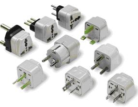 可以預見,在相當長的時間內,交流電插頭/座還會維持現狀。在不能統一標準而又要解決互換使用的情況下,轉接適配器(圖2.3)成為目前行之有效的辦法。實現將某種插座轉換成能與多種插頭匹配的樣式(圖2.4)。適配器自身插頭改進後,適用範圍可更廣。