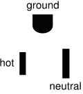 北美ANSI/NEMA標準插座的安裝方向沒有限製(圖3.4a),插座的零/火線通過插孔尺寸識別——零線插孔較火線更寬(圖3.4b)。相應地,插頭上零線插片也較寬(圖3.4c)。這樣,即使插頭為兩芯也能防止插反。相關標準還特別規定,20A插頭的零線方向與火線方向垂直(圖3.4d),與之匹配的插座零線插孔為T形(圖3.4e),可向下兼容兩種不同插頭。