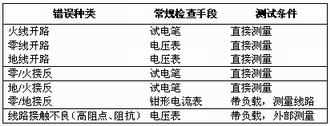 無論哪種插座,正確接線隻有1種,其它組合都是錯誤的。為確保設備和人身安全,插座在投入使用之前,必須依照規範進行檢查。準確辨別各種接線錯誤(3芯插座的接線錯誤歸納於表4.1)需要必要的工具和方法。