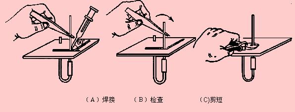4.用鑷子轉動引線,確認不鬆動,然後可用偏口鉗剪去多餘的引線。