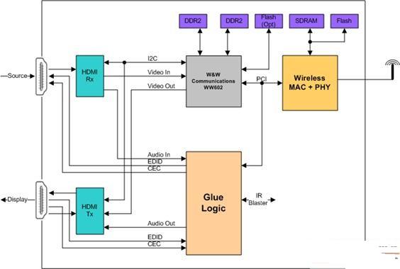 圖-2:基於WW602的單碼流無線HDMI方案的框圖