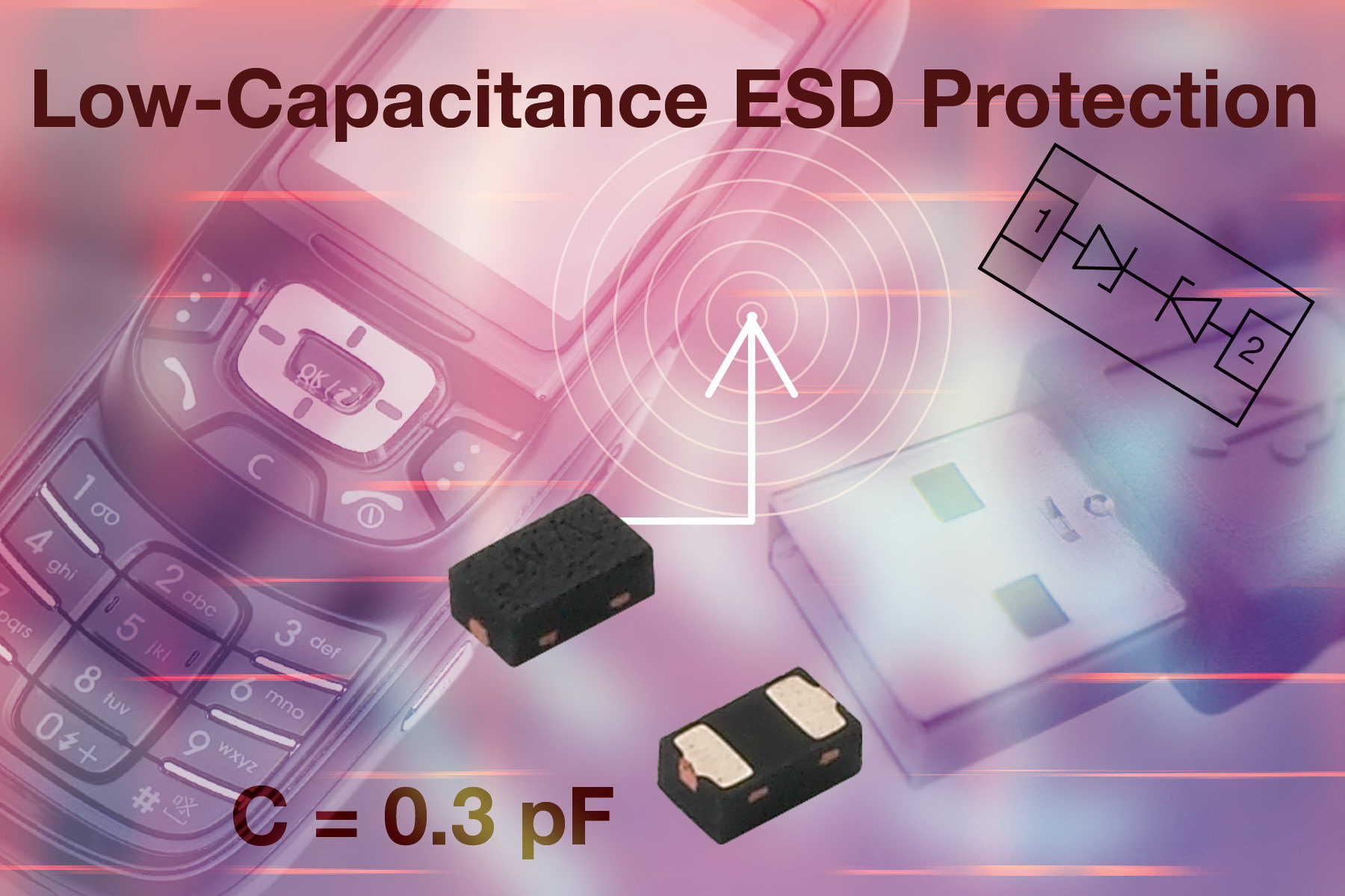 Vishay推出的超小型雙向對稱單線ESD保護二極管