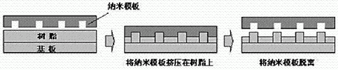 納米印刷技術的基本原理如圖1所suo示shi,就jiu是shi把ba有you納na米mi級ji凹ao凸tu圖tu形xing的de模mo板ban擠ji壓ya在zai塗tu覆fu了le樹shu脂zhi薄bo膜mo的de基ji板ban上shang,再zai在zai樹shu脂zhi薄bo膜mo的de表biao麵mian複fu製zhi凹ao凸tu圖tu形xing。在zai普pu通tong的de納na米mi印yin刷shua技ji術shu中zhong,能neng等deng倍bei複fu製zhi模mo板ban,而er在zai高gao寬kuan比bi納na米mi印yin刷shua技ji術shu中zhong,則ze能neng形xing成cheng高gao出chu納na米mi模mo板ban凹ao部bu的de結jie構gou體ti。