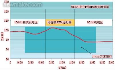傳播通路中阻抗不連續性將會導致反射損失和信號失真。借助時域反射計(TDR),阻抗值可用時間函數直接顯示出來(見圖2),以便時刻監測該數值是否符合USB係統的規定係統公差。