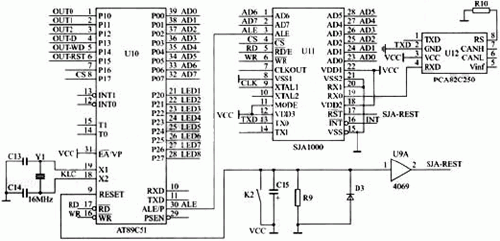 ECU(AT89C51)+CAN控製器(SJA1000)+CAN收發器(PCA82C250)的電路結構以下是其核心芯片簡介: