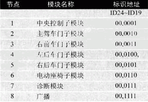 表2車身控製模塊各節點地址分配