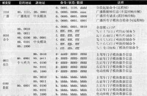 表1車身控製模塊幀模型