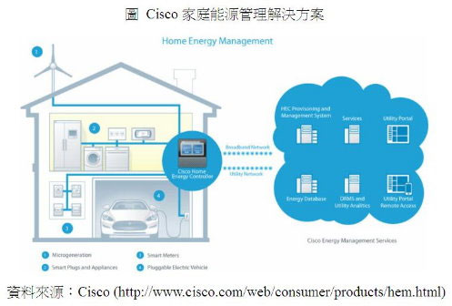 Cisco HEC主要以ZigBee無線網路協定直接與相容的家電進行連結;其他未連線家電則可透過與內建ZigBee係統的可編程通訊型溫控器(Programmable Communicating Thermostat,PCT)或負載控製模組(Load Control Module,LCM)來與HEC進行連結。對外方麵,HEC則透過WiFi無線網路協定與寬頻連結,進一步與Cisco能源管理服務平台連線。服務平台則依據使用狀態、尖離峰動態電價等多項因素來提供最適的電力使用配置建議。未來隨著智慧家電的推出,HEC更可接受家電使用狀態資訊,通知使用者進行保養與維修動作。