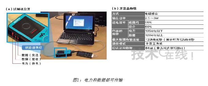 公開了使用索尼“Walkman”和蘋果“iPod nano”的試製機(a)。可將最大120Mbit/秒的數據與電力一起進行傳輸(b)。[page]