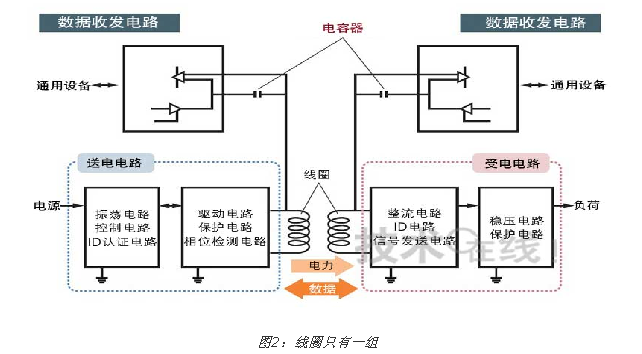 - 一組線圈同時傳輸電力和數據