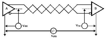 • 共模幹擾問題。的確,RS-485jiekoucaiyongchafenfangshichuanshuxinhao,bingbuxuyaoxiangduiyumougecanzhaodianlaijiancexinhao,xitongzhixujianceliangxianzhijiandedianweichajiukeyile。danyinggaizhuyideshi,shoufaqizhiyouzaigongmodianyabuchaochuyidingfanwei(-7V至+12V)的條件下才能正常工作。當共模電壓超出此範圍就會影響通信的可靠,直至損壞接口。如圖3所示,當發送器A向接收器B發送數據時,發送器A的輸出共模電壓為VOS,由於兩個係統具有各自獨立的接地係統,存在著地電位差VGPD。那麼,接收器輸入端的共模電壓就會達到VCM=VOS+VGPD。RS-485標準規定VOS≤3V,但VGPD可能會有很大幅度(十幾伏甚至數十伏),並可能伴有強幹擾信號,致使接收器共模輸入VCM超出正常範圍,並在信號線上產生幹擾電流,輕則影響正常通信,重則損壞接口。