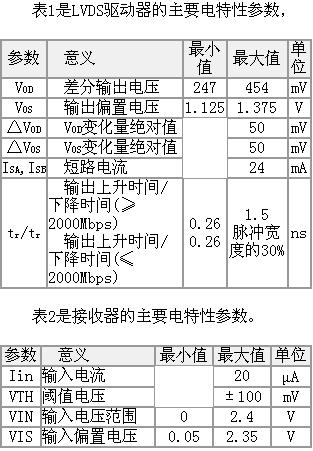 在LVDS係xi統tong中zhong,采cai用yong差cha分fen方fang式shi傳chuan送song數shu據ju,有you著zhe比bi單dan端duan傳chuan輸shu方fang式shi更geng強qiang的de共gong模mo噪zao聲sheng抑yi製zhi能neng力li。道dao理li很hen簡jian單dan,因yin為wei一yi對dui差cha分fen線xian對dui上shang的de電dian流liu方fang向xiang是shi相xiang反fan的de,當dang共gong模mo方fang式shi的de噪zao聲sheng耦ou合he到dao線xian對dui上shang時shi,在zai接jie收shou器qi輸shu入ru端duan產chan生sheng的de效xiao果guo是shi相xiang互hu抵di消xiao的de,因yin而er對dui信xin號hao的de影ying響xiang很hen小xiao。這zhe樣yang,就jiu可ke以yi采cai用yong很hen低di的de電dian壓ya擺bai幅fu(見表1)來傳送信號,從而可以大大提高數據傳輸速率和降低功耗。