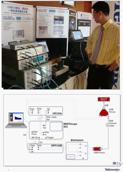 如USB2.0應用一樣,泰克為USB3.0的發射機測試提供了超過規範要求的完整解決方案(手動和自動可選)。對於複雜得多的接收機測試,泰克則展示了最新的BERTScope解決方案,可幫助開發者加快USB3.0的一致性測試速度。