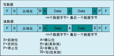 I2Cyunxuduogezhuqijiangongzuozaitongyizongxianshang。duogezhuqijiankeyiqingsongtongbuqishizhong,yincisuoyouzhuqijianjuncaiyongtongyishizhongjinxingchuanshu。duogezhuqijiankeyitongguoshujuzhongcaijiancenayigezhuqijianzhengzaishiyongzongxian,congerbimianshujupohuai。youyu I2C總線隻有兩條導線,因此新從器件隻需接入總線即可,而無需附加邏輯。圖4 顯示了典型的 I2C總線讀/寫操作。