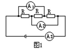 如圖1所示,三個電阻的阻值相等,電流表A1、A2和A3的內電阻均可忽略,它們的示數分別為I1、I2和I3,則I1:I2:I3=______:______:______.