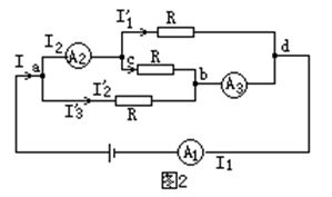 不計電流表內電阻時,三個電阻並聯.設總電流為I,則通過每個電阻的電流