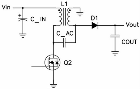 這種電路的電流和電壓波形與連續電流模式(CCM) 反向電路類似。開啟Q1 時,其利用耦合電感主級的輸入電壓,在電路中形成能量。關閉Q1 時,電感的電壓逆轉,然後被鉗製到輸出電壓。電容C_AC 便為SEPIC 與反向電路的差別所在;Q1 開啟時,次級電感電流流過它然後接地。Q1 關閉時,主級電感電流流過C_AC,從而增加流經D1 的輸出電流。相比反向電路,這種拓撲的一個較大好處是FET 和二極管電壓均受到C_AC 的鉗製,並且電路中很少有振鈴。這樣,我們便可以選擇使用更低的電壓,並由此而產生更高功效的器件。