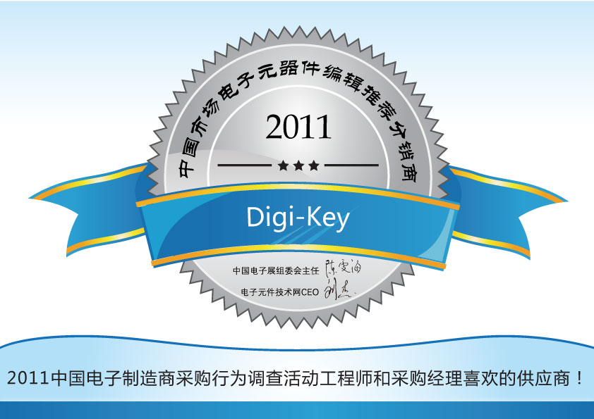 Digi-key榮獲“2011中國市場電子元器件編輯推薦分銷商”稱號
