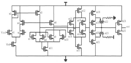 本文所采用的比較器電路如圖5 所示,比較器電路由三級構成,即輸入預放大級、判斷級(或正反饋級)和he輸shu出chu數shu字zi整zheng形xing緩huan衝chong級ji。預yu放fang大da級ji采cai用yong有you源yuan負fu載zai的de差cha分fen放fang大da器qi來lai實shi現xian,其qi放fang大da倍bei數shu不bu用yong很hen大da,用yong來lai進jin行xing輸shu入ru信xin號hao的de放fang大da,以yi提ti高gao比bi較jiao器qi的de敏min感gan度du,並bing把ba比bi較jiao器qi的de輸shu入ru信xin號hao與yu來lai自zi正zheng反fan饋kui級ji的de開kai關guan噪zao聲sheng隔ge離li開kai;判斷級用來將預放大級的信號進一步放大,為比較器的核心部分,電路中通過把m8 與m9 的柵極交叉互連實現正反饋,以具備能夠分辨非常小的信號的能力,並提高此級電路的增益;輸出緩衝級是一個自偏置的差分放大器,它的輸入是一對差分信號,用來把判斷級的輸出信號轉化成邏輯電平(0V 或5V),即輸出高電平VOH=VDD,輸出低電平VOL=GND。