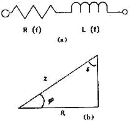 圖 4 鐵氧體抑製元件的等效電路 (a) 和阻抗矢量圖 (b)