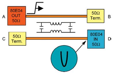 泰克8000B係列儀器中安裝有80E04電子采樣模塊,是成功測量串擾的理想儀器組合。80E04是一款雙通道采樣模塊,包含有一個TDR階躍電壓產生器,能產生上升時間為17ps的250mv窄脈衝,並以50歐姆的源阻抗輸出。測試人員隻需連接待測PCB即可。