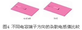 大(da)功(gong)率(lv)器(qi)中(zhong)分(fen)布(bu)雜(za)散(san)電(dian)感(gan)的(de)抑(yi)製(zhi)離(li)不(bu)開(kai)緩(huan)衝(chong)電(dian)容(rong)和(he)電(dian)解(jie)電(dian)容(rong),出(chu)於(yu)成(cheng)本(ben)考(kao)慮(lv),一(yi)般(ban)選(xuan)用(yong)鋁(lv)電(dian)解(jie)電(dian)容(rong)支(zhi)撐(cheng)母(mu)線(xian)直(zhi)流(liu)電(dian)壓(ya),由(you)於(yu)其(qi)耐(nai)壓(ya)等(deng)級(ji)低(di),需(xu)要(yao)大(da)量(liang)串(chuan)並(bing)聯(lian),連(lian)接(jie)線(xian)路(lu)上(shang)的(de)雜(za)散(san)電(dian)感(gan)會(hui)造(zao)成(cheng)各(ge)並(bing)聯(lian)電(dian)容(rong)間(jian)高(gao)頻(pin)電(dian)流(liu)分(fen)布(bu)不(bu)均(jun)勻(yun),距(ju)離(li)功(gong)率(lv)器(qi)件(jian)較(jiao)近(jin)的(de)電(dian)容(rong)會(hui)承(cheng)受(shou)高(gao)於(yu)額(e)定(ding)值(zhi)的(de)電(dian)流(liu)而(er)急(ji)劇(ju)發(fa)熱(re),因(yin)此(ci)這(zhe)兩(liang)者(zhe)是(shi)工(gong)業(ye)工(gong)程(cheng)應(ying)用(yong)中(zhong)的(de)主(zhu)要(yao)問(wen)題(ti)。在(zai)電(dian)容(rong)結(jie)構(gou)設(she)計(ji)中(zhong),主(zhu)要(yao)影(ying)響(xiang)因(yin)素(su)分(fen)別(bie)是(shi):電容端子設計方向、電容串聯結構設計。圖4分別測量了不同電容端子設計電感的值,圖5給出了典型設計方案和主流低電感設計方案中電容串聯方式的不同。從圖5中可以得出這樣的結論,電容端子的方向對電感有較大影響,而電容采用無環路串聯方式可以極大的降低母排電感。圖6給出了電容端子設計良好時母排電流的有限元分析,由圖6可以看出在母線排表麵電流分布十分均勻,等效作用降低了電感。