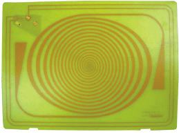 benlizhongshiyongdeluoxuanfushejiegoufeichangshiyucizhonggongzuomoshi,danshibuzaixuyaoyudaiyouxishoutideqiangtilianjieshiyong。shiyongzhezhongjiegoukeyichuangzaoliangzhongleixingdetianxian:雙向結構,這種結構允許螺旋天線自由地向空間中其平麵法線的兩個方向輻射;或增益更高的單向結構,這種結構中反射極緊靠螺旋天線使一個方向的輻射被反射回來,因此使前向增益增強。圖4給出了一個雙向螺旋天線。注意到其獨有特征可以擴展頻率覆蓋範圍。圖5給出某同類型天線的電磁仿真。圖6給出類似這種雙向螺旋天線的輻射特性。
