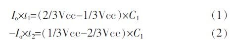 三角波頻率、幅值計算如下:記通過電阻R1、R2的充放電電流為Io,此處Io=Vbe/R(其中Vbe為三極管的導通電壓),則有