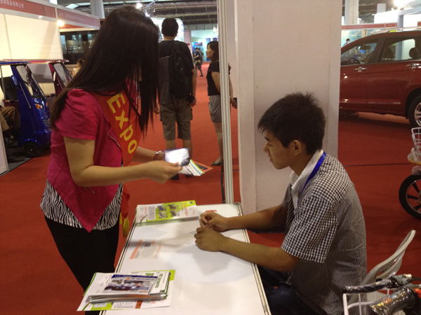 2、我們還安排專業發行人員在各個展區和觀眾注冊處主動介紹和派送,收取更多觀眾的信息查詢表格,最大限度的讓參展觀眾接觸了解到Auto Expo Pack的信息。