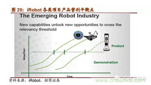 (四)世界經濟增長引擎即將由IT進入RT時代,家庭智能機器人將成為智能物聯網時代家庭的核心終端。2012年全球消費的智能家庭機器人產品總額已經達到16億美元,龍頭企業iRobot2014年上半年實現營收2.54億美元,全球市場占有率超過60%,市值約10億美元。IFR預測2013-2016年估計會有2200萬wan台tai智zhi能neng家jia庭ting機ji器qi人ren得de到dao銷xiao售shou。雖sui然ran我wo國guo的de家jia庭ting服fu務wu機ji器qi人ren技ji術shu相xiang對dui落luo後hou,但dan目mu前qian相xiang關guan企qi業ye做zuo到dao研yan產chan結jie合he,已yi經jing初chu成cheng規gui模mo,表biao現xian良liang好hao,空kong間jian巨ju大da。