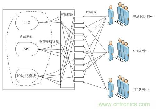 FPGA就以靈活性見長,可編程IO就是其中的一個重要功能。可編程IO給PCB的設計帶來靈活性,可以簡化PCB的布局布線,並且在設計的過程中,還可以根據走線的走向更改管腳的連接。另外,在FPGAneibuluojishejiguochengzhong,keyixianbagongnengmokuaishejiyuguanjiaofenpeiliangbudulikailai,xianwanchengneibuluojigongnengzhihou,zaigenjushijiqingkuangfenpeiguanjiao。yinci,kebianchengIO給FPGA邏輯設計和PCB設計帶來一定的靈活性和獨立性,其在這個環節中充當一個“千手觀音”的角色,為邏輯設計和PCB設計鋪路架橋,如圖2所示。