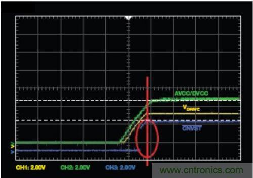 圖1. 在電源上升時拉高CNVST可能導致未知狀態
