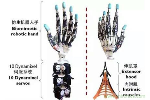 「擬人機器手設計的常規方法是,用類似鉸鏈、聯lian動dong裝zhuang置zhi和he平ping衡heng環huan等deng零ling件jian來lai實shi現xian生sheng物wu部bu件jian的de機ji械xie化hua,從cong而er將jiang看kan似si複fu雜za的de人ren體ti參can照zhao物wu進jin行xing了le簡jian化hua。這zhe種zhong方fang法fa對dui於yu理li解jie並bing模mo仿fang人ren手shou的de運yun動dong原yuan理li有you一yi定ding幫bang助zhu,但dan不bu可ke避bi免mian的de製zhi造zao了le一yi些xie人ren與yu機ji械xie手shou之zhi間jian的de不bu良liang差cha異yi,因yin為wei人ren手shou上shang大da多duo數shu顯xian著zhu的de生sheng物wu力li學xue特te征zheng都dou在zai機ji械xie化hua的de過guo程cheng中zhong被bei丟diu棄qi了le。這zhe些xie機ji器qi手shou和he人ren手shou生sheng物wu力li學xue在zai本ben質zhi上shang的de不bu匹pi配pei阻zu礙ai了le我wo們men使shi用yong自zi然ran的de手shou部bu運yun動dong來lai直zhi接jie控kong製zhi它ta們men。因yin此ci,還hai沒mei有you任ren何he一yi隻zhi擬ni人ren機ji器qi人ren手shou可ke以yi達da到dao人ren手shou的de靈ling巧qiao程cheng度du。」