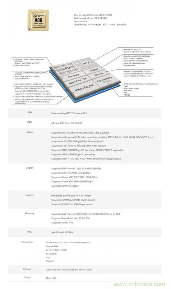 睿悅信息在2015年底推出的Nibiru基於Nibiru VR ROM的VR一體機產品采用了全誌A80芯片作為CPU。