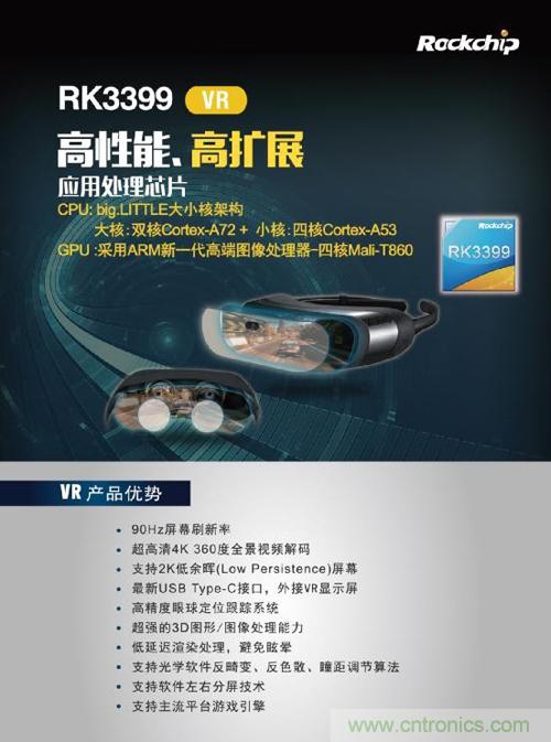 據了解,目前瑞芯微Rockchip旗下主流芯片RK3288,應用於VR產品,已經具備其曝光的所有技術優勢。已在VR產業鏈頗具建樹,在2016年的CES展及本次香港展,多家品牌終端廠商采用了該入門級VR方案並進行了展示。而最新發布的RK3399處理器,更定於中高端VR產品線,在硬件配置上提升巨大。