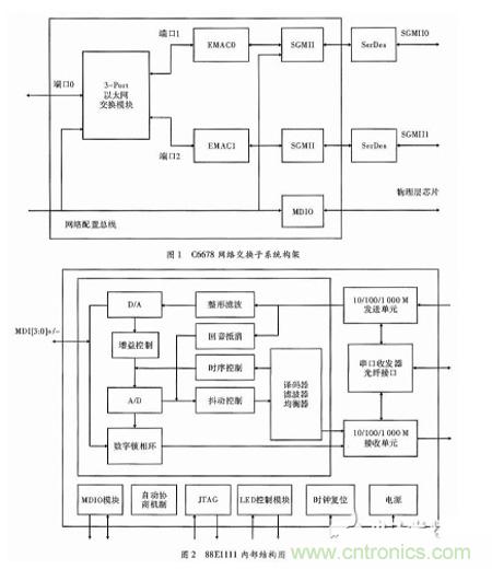EMAC的作用是將交換子係統的內部信號轉換為GMII信號傳遞給SGMII模塊;MDIO控製物理層芯片執行對多數據流的控製輸入輸出。