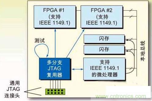 在每塊電路板上添加一個策略性IC器件-JTAG複用器件,目的是去除電路板上的多個1149.1接頭並管理多個JTAG通路。這個JTAG複用器件所占用的電路板空間通常比一個JTAG接頭還小,但卻簡化了元件的隔離,也簡化了提高接入效率所需掃描路徑的組織。