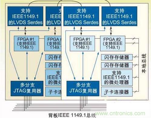 如果驅動器/接收器對允許進行JTAG可接入的全速BIST(內建自測),也能測試板卡之間的背板互連,或者可以驗證板卡之間的高速 LVDS串行鏈接,那麼就能對板卡間背板互連的完整性進行測試,或者驗證板卡間的高速LVDS串行連接。或這些高速互連都是電容性耦合,並且驅動器/接收 器支持,則可以進行IEEE 1149.6測試。