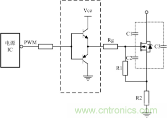 開關管開通瞬時,驅動電路應能提供足夠大的充電電流使MOSFET柵源極間電壓迅速上升到所需值,保證開關管能快速開通且不存在上升沿的高頻振蕩。