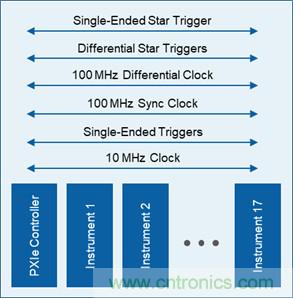 ● PXI Express保留了原始的PXI規範中的10 MHz背板時鍾,以及單端PXI觸發總線和長度匹配的PXI星形觸發信號。