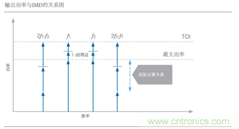 TOI是衡量射頻前端性能的重要指標,因為IMD比率取決於功率電平。TOI的測量將IMD性能的要素與絕對功率電平相結合,並通過一個數字來表示性能。