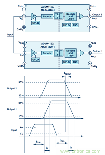 圖5. ADuM4120柵極驅動器和時序波形