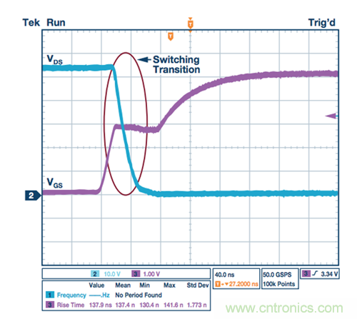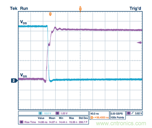 圖3. 有柵極驅動器的MOSFET導通轉換